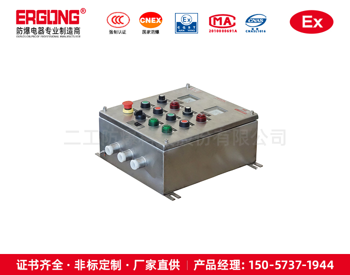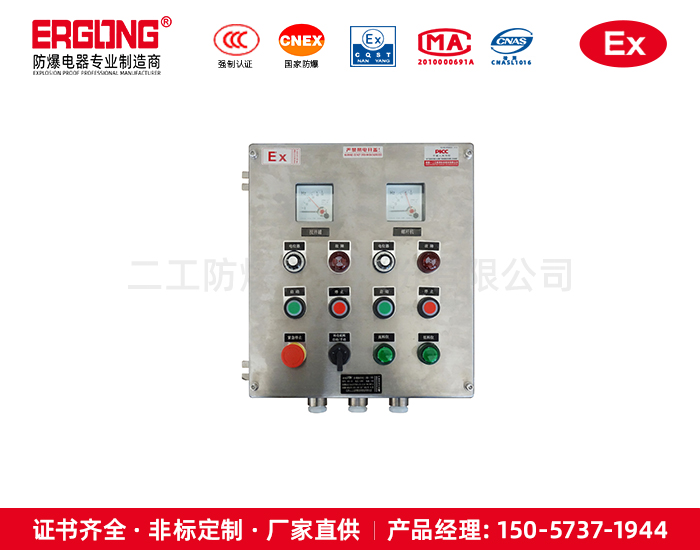 2. 本產品為改進型防爆產品,內部可裝防爆按鈕、防爆指示燈、防爆電流表、防爆開關、防爆電壓表等各種儀表和控制需要的部分;